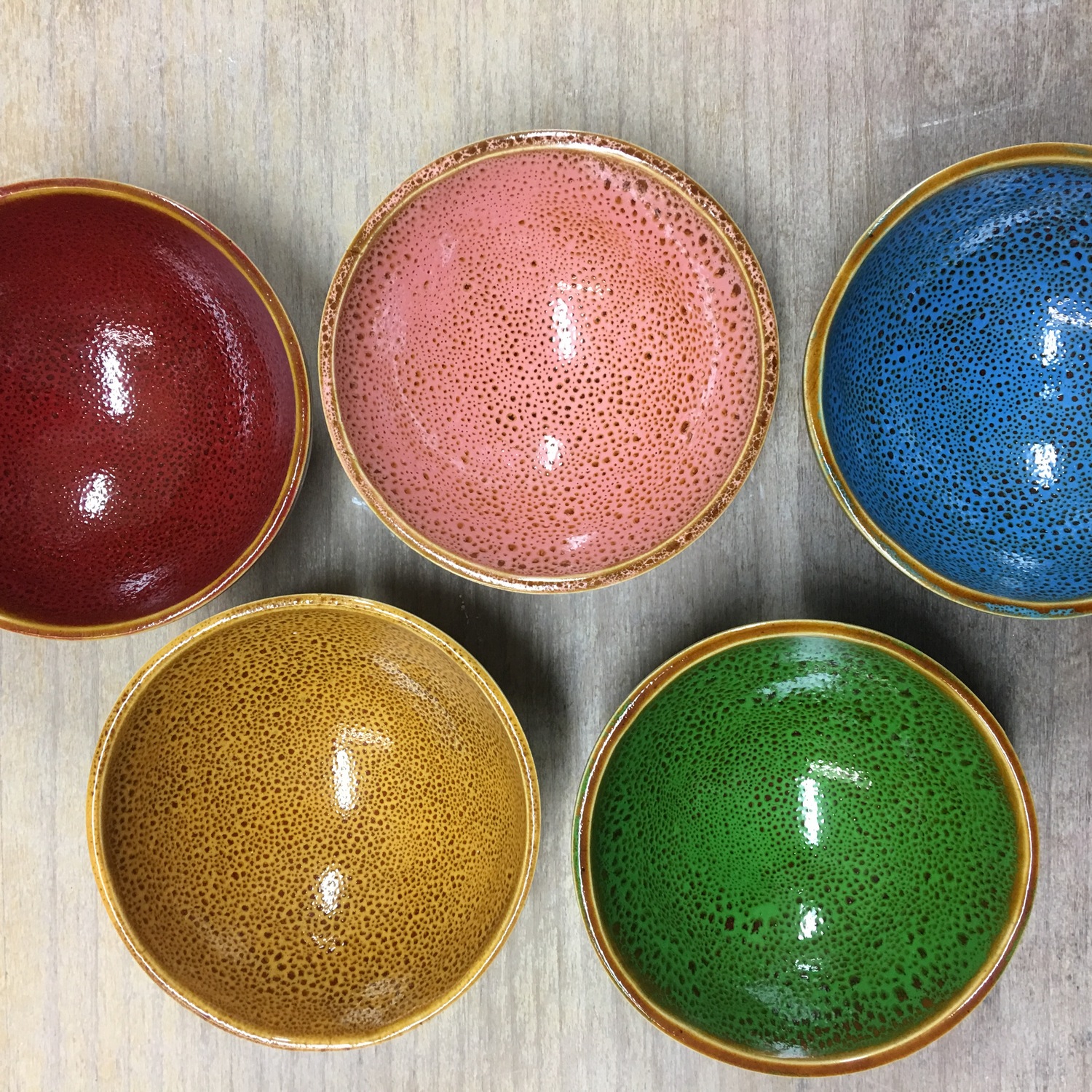 Der Glasur-Klassiker „Cognac“ vor bunter Bühne mit spannenden Tropfen-Effekten: Maisgelb, Himmelblau & Co. ergeben beson…